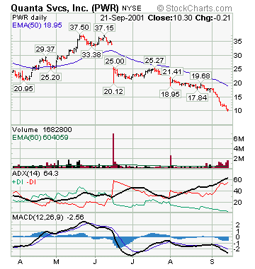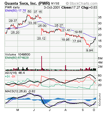 PWR was a stock that had an ADX Value of 64 on Sep21,2001 with a price that was