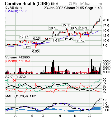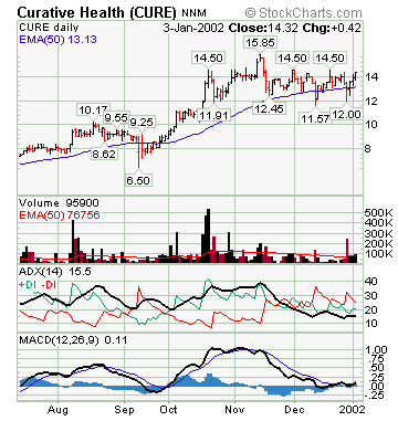 CURE more than doubled from its Sep2001 lows and moved in a general sideways, slightly