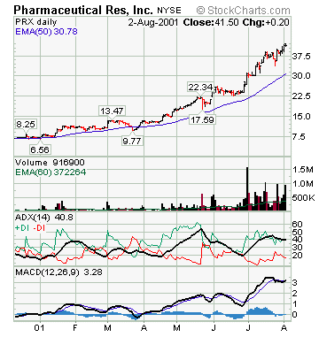 PRX was a Ceiling Burster on Jan17,2001, achieving a new high on 4.8x average