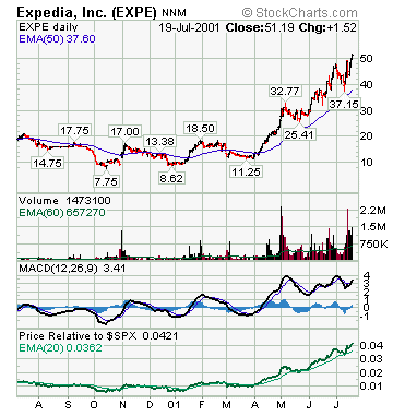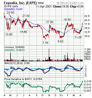 EXPE's RS Line hit a new 52-week high in mid-April 2001 (as the market was just